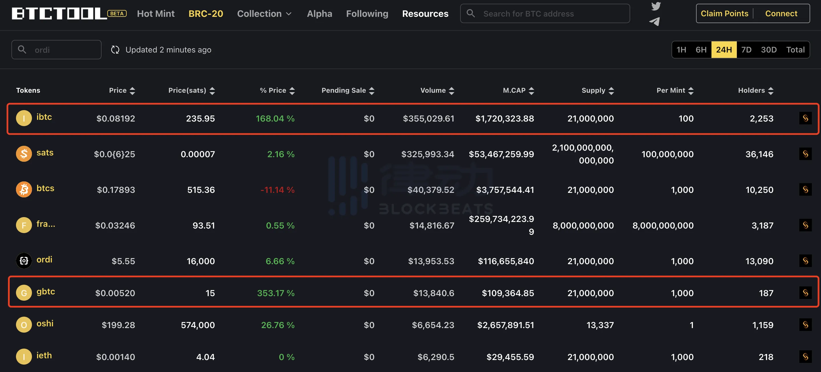 10 月 24 日凌晨三点,彭博社 ETF 分析师 Eric Balchunas 发文称贝莱德子公司 iShares 比特币信托已在 DTCC(美国证券集中保管结算公司)上市,股票代码将是「IBTC」。随后比特币短时拉升触及 31,380 美元,几个小时后比特币达到今年新高。而这一波上涨行情也将 BRC20 代币 $ibtc 带出了圈。 2 I/ {' C, R" P- Y! F- y5 r a